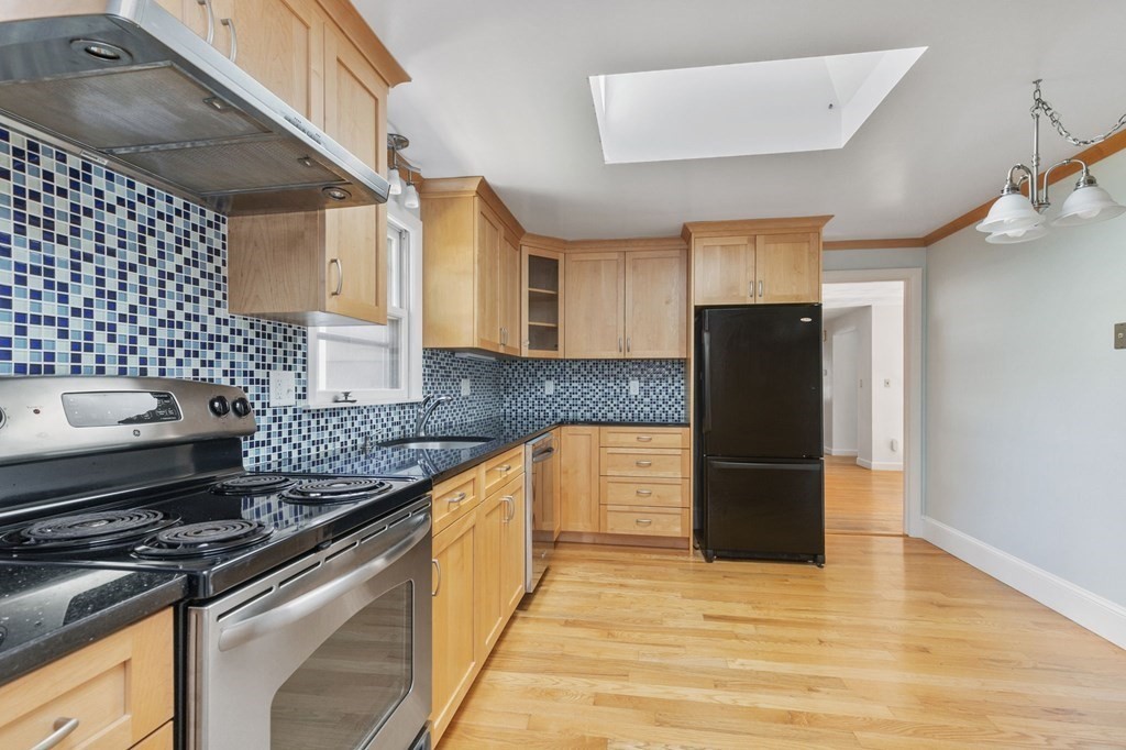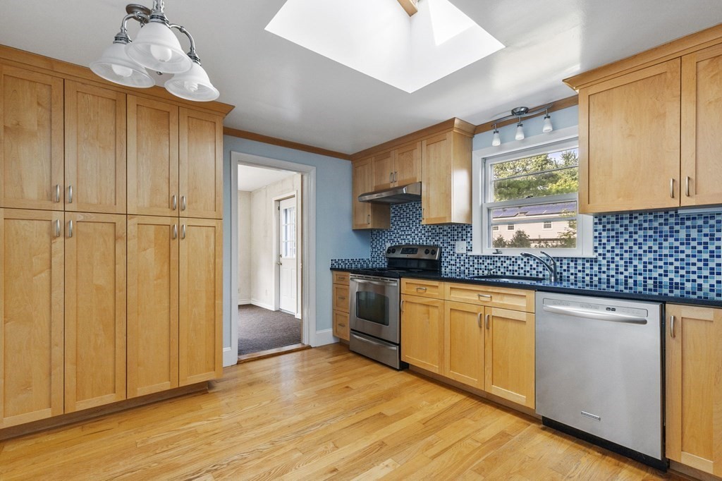 Welcome to this stunning split-level home, boasting a bright and beautiful floor plan that's sure to impress! Main level features HW floors throughout, and a spacious living room with a wood-burning fireplace for year-round comfort. The modern kitchen is a sleek space with custom HW maple cabinets, granite countertops, stainless steel appliances, a range hood vented to the outside as well as new skylights, letting in lots of natural light for enjoying delicious meals and entertaining guests. The large family room adds ample space for entertainment with its abundance of windows. With 3 bedrooms including a huge primary bedroom with 2 closets, and 2 large full baths for added convenience. The finished basement houses the laundry with a utility sink and room for extra storage. And the allure continues outside! Enjoy plenty of privacy on the private deck with natural shade for those hot summer days and the refreshing ocean breeze. Located just a short 10min walk away to the beach. In partnership with The Dovetail Group.